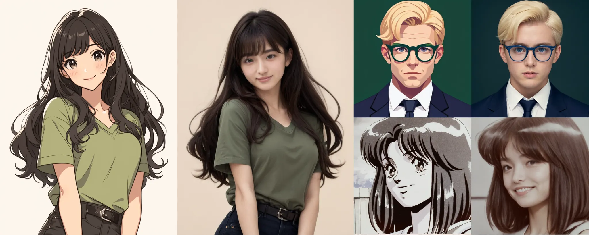 The example demonstrates the process of converting an animated-style character into a realistic portra