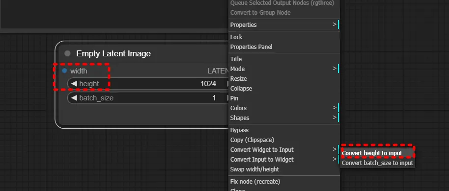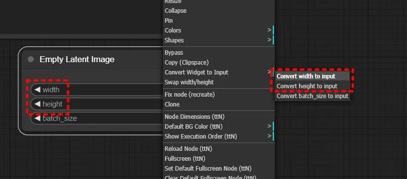 To streamline this process, right-click and find convert … to change the width and height inputs from widgets to direct input fields.