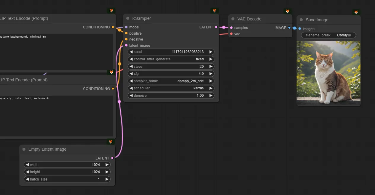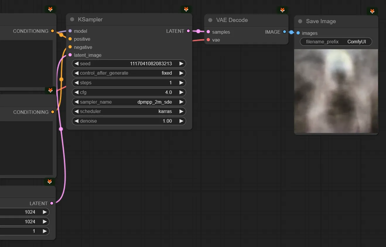 즉 스테이블디퓨전은 KSampler가 초기 시드 노이즈로부터 디노이징을 해나가는 과정입니다.