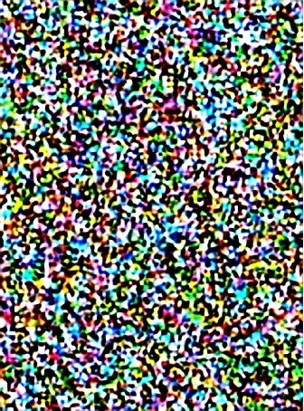 text image에서는 Latent로 Empty latent image를 넣어줍니다. (768x1024 비율을 갖는 이미지라고 해봅시다.) 그리고 KSampler에서는 seed값을 설정합니다. 그 말은, 입력으로 이런 노이즈를 넣겠다는 뜻입니다. (실제로 이렇게 생기지는 않았습니다.)