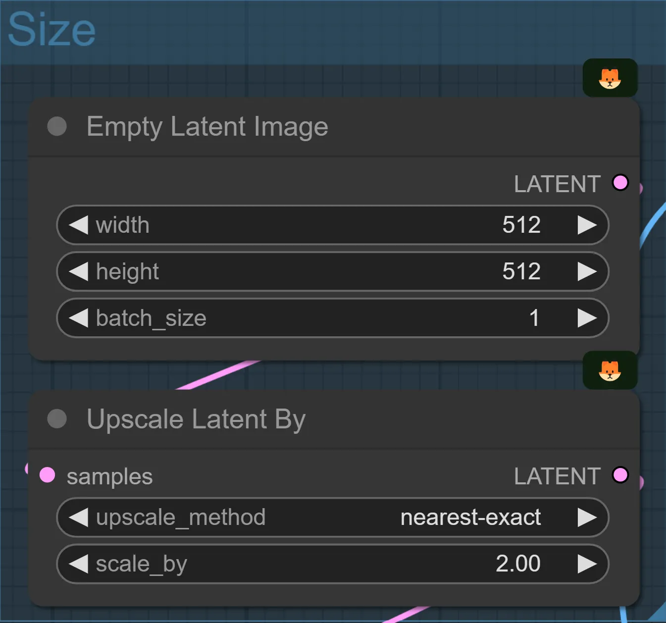 원하는 이미지의 사이즈를 Empty Latent Image에 작성하시고 Upscale Latent By의 scale_by에서 원하는 배율을 작성하시면 됩니다.